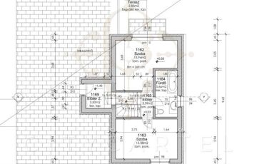 Földszint: 110,55 nm lakótér, 9,06 nm és 9,33 nm terasz