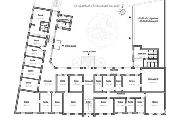- Fő épület: ~650,00 m2 (alaprajz a fotók között)