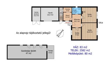 A jelen hirdetésben rögzített, az ingatlannal kapcsolatos adatok, információk az Eladó tájékoztatása alapján kerültek meghatározásra.