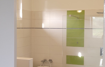 A modern cottage stílusban kialakított lakóterekben olasz design burkolatok és szaniterek , francia stílusú konyhasziget, fehér bambusz svédpadló stb.