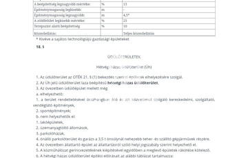 6. A hétvégi házas üdülőterület építési előírásait az alábbi táblázat tartalmazza: