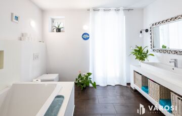 Tökéletes választás családi otthonnak és vállalkozásnak egyaránt. A tulajdonos különleges ízlésének köszönhetően tökéltes mediterrán hangulatot varázsolt a háznak.