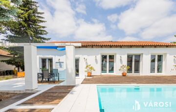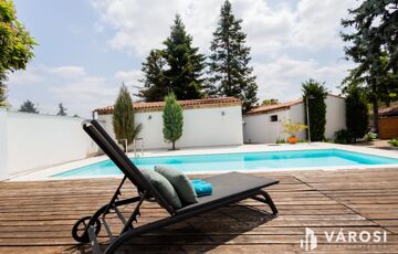 A kertben egy 3x 8 m alapterületű sósvizű medence is helyet kapott, mely tovább fokozza a mediterrán hangulatot. Emellett két melléképület is megtalálható a telken, melyek összközművesek, így tökéletesen alkalmasak lehetnek garázs, tároló, de akár iroda, vagy apartmanoztatási célra is, ennek eldöntése már az új tulajdonosra vár.