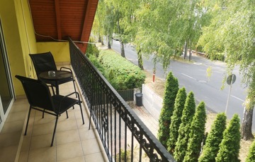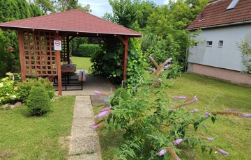 Zala vármegye, Hévíz 300m2-es, 3 szintes apartmanház eladó. A jelenleg is üzemelő, az ingatlan nyilvántartásban „kivett lakóház, udvar” megnevezésű ingatlan alsó szintjén konyha étkezővel, háztartási helyiség, tároló zuhanyzó illemhelyiséggel, külön illemhelyiség és szoba található. Átjárás az 50m2-es garázsba. A középső (fogadó szinten) a hallból jutunk a két apartmanba míg az emeleten további két stúdió és egy apartman került kialakításra. Az helyiségek teljesen felszereltek. Így összességében az ingatlanban 10fő (pótágyazással további 6 fő) elszállásolható. A ház 2000-ben épült, felújítása 2012-ben megtörtént (ekkor kapott 10cm szigetelést is). Azóta is folyamatosan karbantartott. A klímával, elektromos redőnyökkel felszerelt igényes ingatlan melegéről gáz-kazán gondoskodik. Legutóbbi fejlesztésként 2023-ban 8kW-os napelemes rendszer telepítésére került sor. A házhoz tartozó 879m2 telken gépjárműbeállók, a füvesített kertben grillező, pihenő és gyümölcsfák szolgálják a pihenők kikapcsolódását. Az ingatlan vételára teljes felszereléssel értendő. A ház alkalmas lehet bérbeadásra, de akár több generációs család lakhatására is