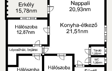 Az ingatlan három külön nyíló hálószobával és egy tágas amerikai konyhás nappalival rendelkezik. Az elosztása kiváló, hiszen minden szoba önállóan megközelíthető. A nappaliból egy 15 nm-es erkélyre léphetünk ki, ahonnan gyönyörű kilátás nyílik a Kálvária-dombra.