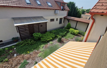 A társasház rendszeresen karbantartott kertjét profi kertész gondozza, így a lakók mentesülnek az udvar rendben tartásának terhei alól.
