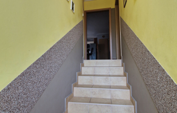 A 2013-ban épült, mindössze négy lakásos társasház első emeletén helyezkedik el, egy olyan épületben, amely két különálló egységből áll, épületenként két-két lakással.