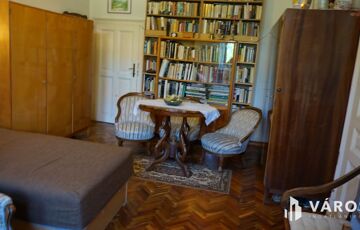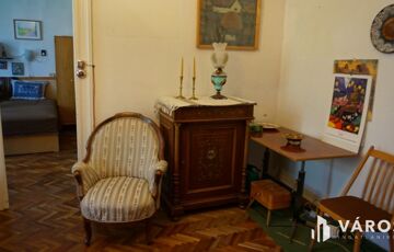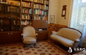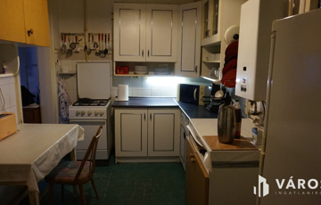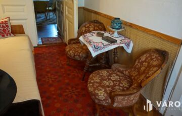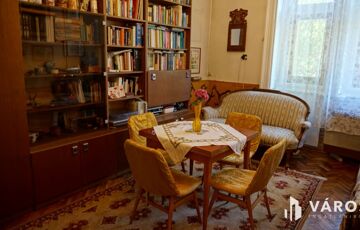 Az egész ingatlant áthatja a polgári életvitelre jellemző berendezés, bútorzat, tágas szobák, a polcokon a temérdek könyv. A lakásnak 2 bejárata van, egyik a kapualjból nyílik, másik a teraszról. A teraszról az előtérbe lépünk először /4 m2/, innen nyílik egy 10 m2-es szoba és a konyha /9 m2/, valamint a toalett /1 m2/. Az egész lakás körbejárható: a kisszobából tovább haladva a két 21 m2-es egymásba nyíló utcai szobába jutunk. A belső szobából nyílik a 4 m2-es fürdőszoba tusolóval és bidével, ami a konyhából is megközelíthető. Ill van egy 4 m2-es kamra, amely szintén a konyhából nyílik. Fűtése gázkonvektoros, a melegvizet átfolyós vízmelegítő szolgáltatja. Kisebb felújításokat végeztek az ingatlanon az utóbbi években, ekkor készült el a fürdőszoba, az utcai fal vízszigetelése, a kapualj hőszigetelése, ill az utcai ablakok cseréje. Viszont egy átfogó felújítás, korszerűsítés az új tulajdonos feladata lesz. Az ingatlan kiváló elhelyezkedése miatt minden gyorsan elérhető: bölcsőde, óvoda, iskola, buszmegálló, üzletek, éttermek, zöldséges, orvosi rendelő, gyógyszertár.