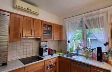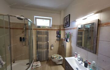 Itt található az egyik fürdőszoba zuhanyzóval és WC-vel, valamint a néhány éve cserélt kondenzációs gázkazán és az új kémény. A 17 m²-es TERASZ a nappaliból nyílik, elektromos napellenzővel, így nyáron is kellemes a hőérzet.