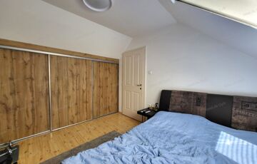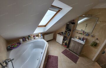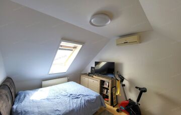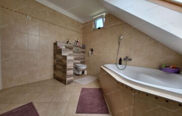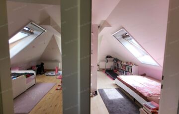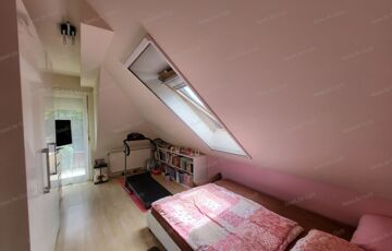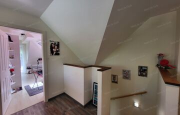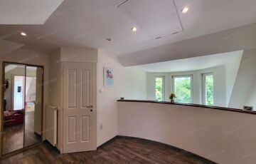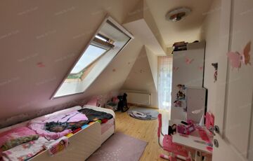 Az emeletre egy kényelmes, biztonságos lépcső vezet fel. Itt három külön bejáratú, kényelmes szoba vár, amelyek közül kettő ERKÉLYKAPCSOLATOS – ez ritka és rendkívül praktikus. A hatalmas, kádas fürdő külön WC-vel, illetve a gardrób és egy egyedileg tervezett közlekedő igazán egyedivé teszi ezt a szintet.