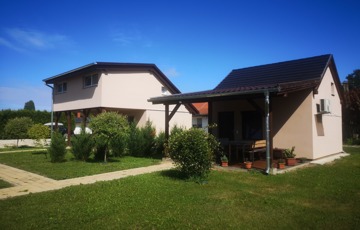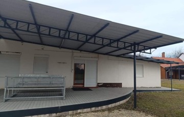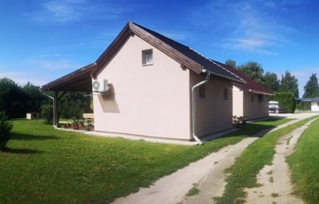 Zala vármegye, Kerkabarabás, közel 1 hektáron bejáratott magánszálláshely eladó. A szlovén határ közelében található Kerkabarabás nevét a mellette elhaladó Kerka patakról és a török eredetű "barabás" szóból kapta, melynek jelentése "vízimalom". A település a Göcsej jellegzetes dombos vidékén fekszik, melyet erdők és rétek tarkítanak. A csendes, nyugodt környezet ideális pihenésre, kikapcsolódásra. A környék számos túrázási és kerékpározási lehetőséget kínál, és felfedezhetők a Göcsejre jellemző népi építészeti emlékek is. A 9926m2-es, körbekerített telken 5 épület, valamint parkosított, 10db lakókocsi beállóval is rendelkező (vízzel, árammal rendelkező) terület található. A tégla építésű, 100m2-es, 2019-ben felújított (vezetékek, burkolatok cseréje, szigetelés, korszerűsítés, stb), szigetelt, teraszos főépületben 2 hálószoba, nappali, két fürdőszoba, konyha, előtér, kazánház és szauna került kialakításra. Az épület melegéről központi fűtés (gázkazán) és cserépkályha gondoskodik. A közel 200m2-es udvari épületben apartman (2 szobával, nappalival, konyhával és fürdővel), 24 férőhelyes (jelenleg raktárként szolgáló) „rendezvényterem”, garázs, és 2db vizesblokk található. Az épület mellett helyezkedik el a felújítandó, 2mX8mX13,5m-es, gépészettel, fúrt kúttal rendelkező fedett medence. A szállást két, 3 éve épült apartman teszi teljessé, melyek közül a szinteltolásos, szigetelt, teraszos épületben nappali, konyha, étkező, fürdőszoba és hálószoba, míg a mellette található galériás apartmanban nappali, konyha, étkező, fürdő, és háló került kialakításra. Ezen apartmanok melegéről hűtő-fűtő klíma gondoskodik. Az összességében 24 férőhelyes, tehermentes szálláshely udvarán a gépjárművek parkolása megoldott.
