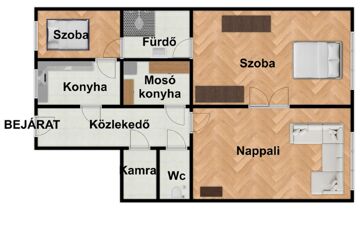-82nm-es lakás(konyha, fürdőszoba,nappali, 3 szoba, előszoba, wc és kamra)