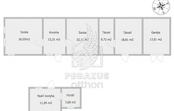 A főépületben a jelenleg kialakított lakórész 64m², két hangulatos szoba hajópadlóval, egy szoba pedig praktikus PVC burkolattal várja új lakóit. A ház végében található, két helységből álló, 45 m²-es tároló, melyekből könnyedén kialakíthatóak további lakóhelyiségek, így az ingatlan a jövőbeni bővítésre is kiválóan alkalmas. Mindezen felül egy garzás is található az épület legvégében.