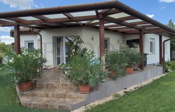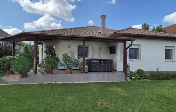 A kert igazi ékszere a 5x8 méteres, 150 cm mély, hőszivattyúval fűthető medence, amely tökéletes helyszíne a nyári kikapcsolódásnak, míg a 24,88 négyzetméteres, fedett terasz az esti nyugalom, a családi reggelik vagy baráti összejövetelek méltó színtere. A telken található fúrt kút és automata öntözőrendszer a kert fenntartását egyszerűvé és gazdaságossá teszi, a tetőtér pedig betonfödémes kialakításának köszönhetően igény esetén tovább bővíthető. Az udvari autóbeálló pedig további parkolási lehetőséget biztosít a vendégek vagy akár egy harmadik autó számára.