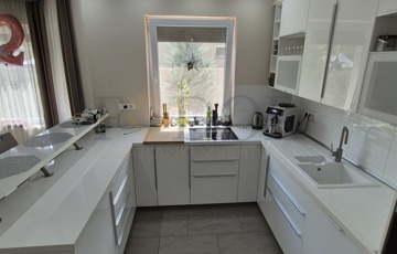 A ház kifogástalan állapotú, 2021-ben épült, 38-as téglafalakkal és 10 cm-es hőszigeteléssel, így energetikailag is korszerű. A gondos tulajdonos minden apró részletre figyelt – így nem maradhatott el az elektromos kapu, a viacoloros személyi és autós bejáró, a tágas, 36 négyzetméteres garázs, a riasztó- és kamerarendszer, valamint a modern klímaberendezés sem.