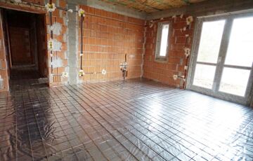 aljzatbeton 10 cm lépésálló nikecell, plusz hő visszaverő fólia a padlófűtéssel rendelkező helyiségekben.