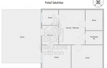 Ezen a szinten egy hatalmas, márványmintás burkolattal ellátott tér várja, ami ideális egy tágas nappali vagy egy impozáns konyha-étkező kialakítására. Emellett két nagyméretű és két kisebb szoba biztosít kényelmes életteret, melyek laminált padlóval burkoltak. Az egyik kisebb szoba még kialakítás alatt áll, de hamarosan ez is tökéletes állapotban várja Önt. A felső szintre egy tágas, 60 nm-es teraszon keresztül juthatunk be, mely kiválóan alkalmas reggeli kávézáshoz vagy esti beszélgetésekhez.