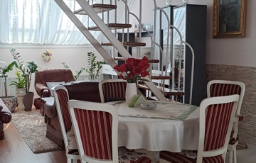 A lakás világos, tágas terekkel rendelkezik. 4 szoba + nappali, konyha + étkező, kamra, fürdő és wc külön helyiségben, műanyag nyílászárók, redőny, reluxa, rovarháló, klíma. Laminált padló és csempe burkolatú. Fűtése: egyedi gázfűtés. Az alsó szinten van: 2 hálószoba, nappali, konyha, kamra, fürdő, wc. A tágas fürdőszobában fürdőkád és zuhanykabin. A felső szinten 2 hálószoba. A lakáshoz egy kisebb erkély és egy tágasabb terasz tartozik. Közös tároló. A mélygarázsban autóbeálló bérelhető. A társasház jó elhelyezkedésű, kedves szomszédok, jó lakóközösség. A lakás igényes, modern kialakítású, tehermentes.Az ingatlan azonosítója: 97977Érdeklődni: +3670/328-8474 Az ingatlan azonosítója: 97977 Érdeklődni: +3670/328-8474