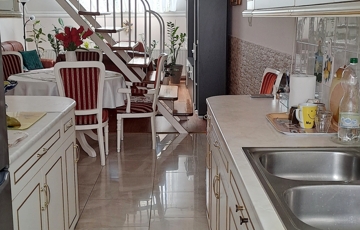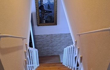 Alsó szint: nappali, 2 hálószoba, konyha + étkező, kamra, fürdőszoba (káddal és zuhanykabinnal), külön WC