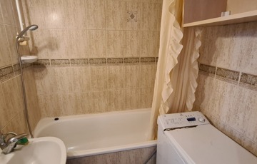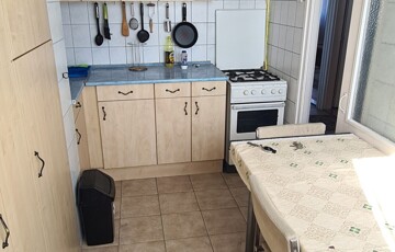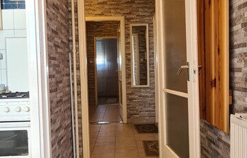 A lakásban járólap és laminált parketta burkolat található, a fűtés mért távhő rendszerrel működik. A konyhát egyedi beépített bútor teszi praktikusabbá, a fürdőszoba jó állapotú, a WC külön helyiségben került kialakításra.