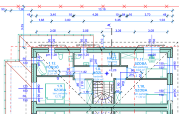 Az emeleten három hálószoba, közlekedő, fürdőszoba és háztartási helyiség kerül kialakításra.