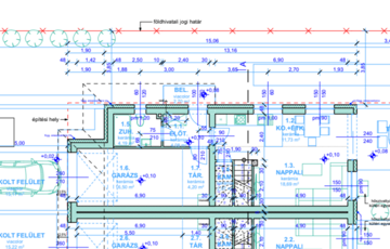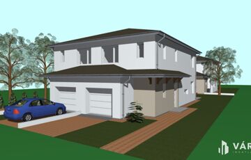 A garázs előtt 5 m előkert került kialakításra, így szükség esetén egy további autó felszíni beállása biztosított.