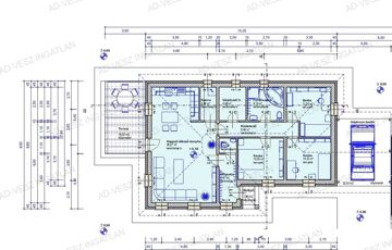 Kialakításra kerül 3 hálószoba, egy tágas, világos, amerikai konyhás nappali, fürdő, wc, kazánház, előszoba, közlekedő, kamra, valamint egy kényelmes, fedett terasz, és fedett kocsibeálló.