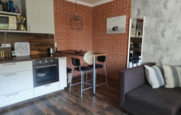 Beépített konyhabútor gépekkel felszerelt, nappaliban tévé, kanapé, a fürdőben mosógép, mosdószekrény.