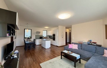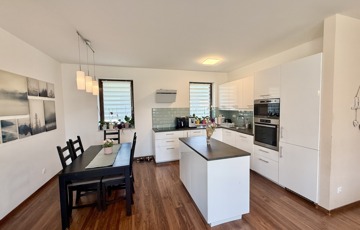 A 113 m²-es otthon szíve a hatalmas amerikai konyhás nappali, amely a családi együttlétek tökéletes helyszíne.