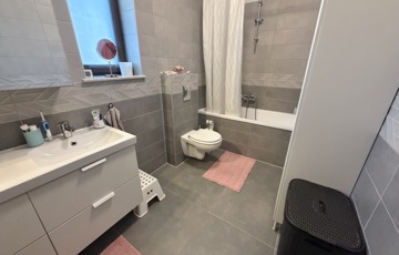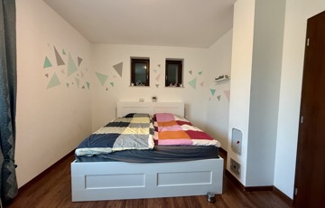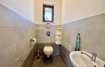 Három kényelmes szoba, egy modern fürdőszoba WC-vel, külön vendég-WC, praktikus háztartási helyiség egy kis tároló és egy 16 m2-es, hangulatos, fedett terasz gondoskodik a mindennapok kényelméről.