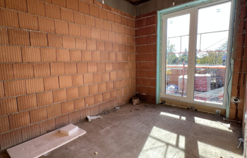 Vasbeton sávalap, POROTHERM 25 N+F vázkerámia falazat 20 cm vastagságú EPS polisztirol szigeteléssel. Lakások elválasztása hanggátló 30 cm vastagságú POROTHERM Aku Z vázkerámia falakkal történik. Válaszfalak POROTHERM 10 N+F cm vastagságú vázkerámia falazóelemekből készülnek. Zárófödém: kőzetgyapot vagy fújt PUR 15 cm közötti vastagságban szarufák között.