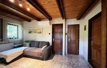 Az emelet egy igazi kis birodalom: a természetes fa burkolatok melegséget és otthonosságot sugároznak, a hangulatos terek pedig igazán különlegessé teszik ezt a szintet. A nappali mellett három hálószoba, egy kádas fürdőszoba és egy saját konyha található, így az ingatlan akár többféle lakóközösség igényeit is kényelmesen kielégítheti. Ráadásul a ház szinte minden ablakából pazar kilátás nyílik, így bármerre nézünk, a természet szépsége tárul elénk.