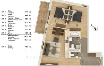 A liftes társasház 2. emeletén található, 68,94 nm-es, (66,83 nm lakás 7,95 nm terasszal) 3 szobás lakás korszerű hőszivattyús fűtés–hűtéssel és teljes körű okosotthon-rendszerrel felszerelve várja új tulajdonosát. A burkolatok még választhatók, így a leendő tulajdonos saját ízlésére szabhatja az ingatlant.