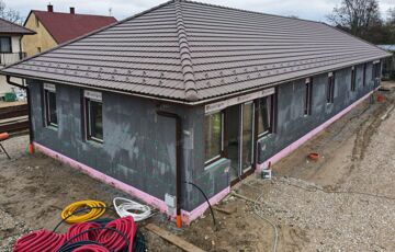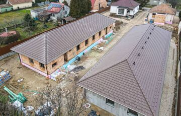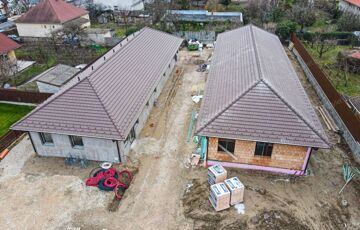 Vasbeton sávalapon 30 cm-es Porotherm falazat nyugszik, fa födémmel, cserép héjalással, alul 12 cm, oldalt 12 cm grafitos, míg a födémen 30 cm-es fújt cellulóz szigeteléssel. A lakások között az elválasztó falak duplán vannak rakva (nincs áthallás), a kertrészek között és a padlástérben is biztosított a szeparáltság. Fontos kiemelni, hogy a lakásokba nem kerül bevezetésre a gáz. A fűtést, a hűtést és a használati meleg vizet Daikin hőszivattyú biztosítja 260L-es melegvíz tárolóval, az A+-os energetikai besorolást hővisszanyerős szellőztetőrendszer(!) biztosítja. A hőleadás helyiségenként szabályozható padlófűtéssel, illetve mennyezeti hűtés/fűtéssel történik. A szobákból így nem foglalnak helyet a radiátorok, nincs szükség klímára sem. A hőszivattyú működését napelemmel lehet segíteni, de ezek nem kerülnek felszerelésre, csupán előkészítésük lesz biztosítva az inverterig. A nyílászárók barna színű, 5 kamrás műanyag ablakok, 3 rétegű üvegezéssel. Hőhídmentes rejtett redőnytokok készülnek melyek elektromos alumínium redőnyt kapnak. A riasztó előkészítését az ár tartalmazza, de a rendszerét és a telepítését nem. Minden lakáshoz 1 db felszíni gépkocsi beálló tartozik, melyet motoros kapun keresztül lehet megközelíteni. A projekt, számos környékbeli referenciával rendelkező beruházó által lesz megvalósítva. A beruházó tőkeerős, nem a vevők pénzéből építi fel az ikerházat.Az építkezés elkezdődott és a tervezett ütemben halad.