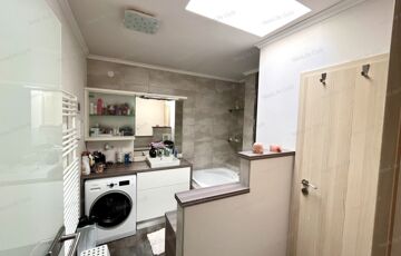 A fürdőszobába is egyedi bútorok kerültek (Concept Bútor Stúdió),mely által a fürdő modern, tágas és világos. A fürdőszobában a wc külön helységben,elszeparálva található.