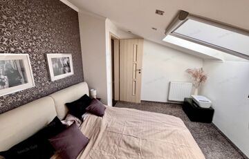 A külső nyílászárók műanyagok, az ablakok redőnnyel és szúnyoghálóval vannak felszerelve. A tetőtéri ablakok Veluxok, belső fényzáró, külső hővédő és szúnyogháló rolóval felszereltek.