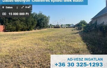 Eladó telek/földterület Dabas, 15 000 000 Ft, 1 268 Négyzetméter