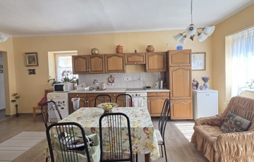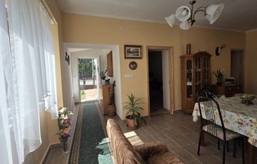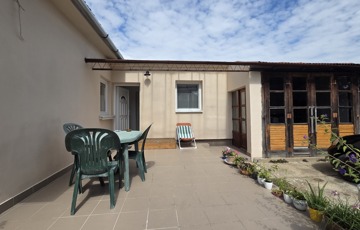 Hátul nagy, újonnan épített terasz: ideális pihenésre, vendégfogadásra
