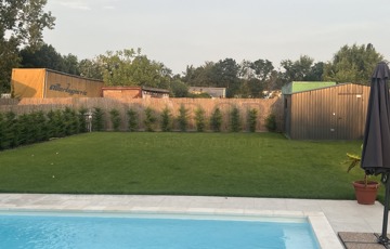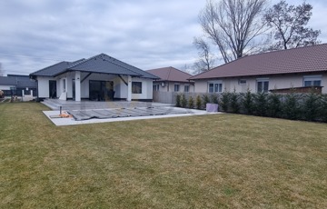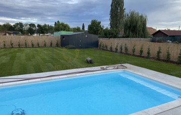 A 1063 m²-es, parkosított kert valódi édenkert, ahol automata öntözőrendszer gondoskodik a gyönyörű zöldellő pázsitról és növényekről. Akár egy csésze kávéval a teraszon, akár a medence partján pihenve – minden perc olyan, mintha nyaralna.
