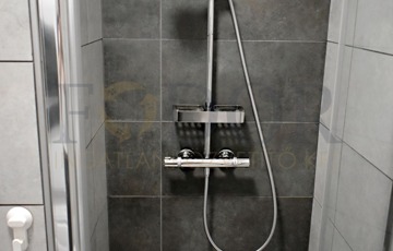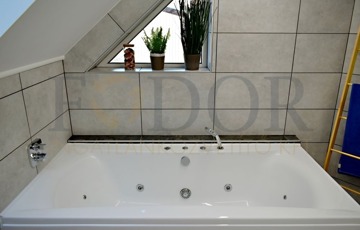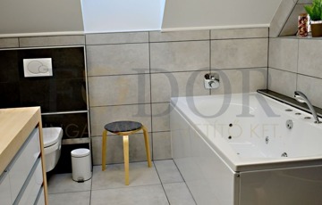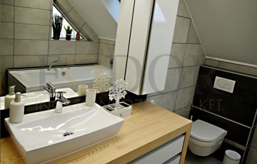 • Fürdő mindkét szinten: alul épített zuhany és bidés WC, felül hidromasszázskád víz- és levegőfúvókákkal, igazi wellness-élmény otthon.