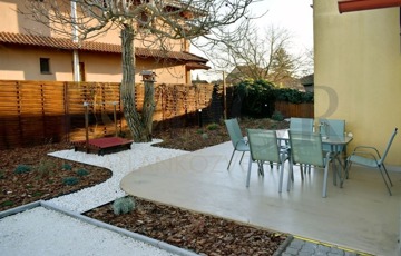 • 141 m²-es lakótér, 16 m²-es garázs elektromos kapuval, 180 m²-es gondozott, automata öntözésű díszkert, ahol válogatott növények és egy gyönyörű diófa adnak árnyat a nyári napokon.