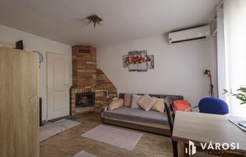 A földszinti részen egy hangulatos nappali, konyha, fürdőszoba és különálló wc kapott helyett. Az új nyílászáróknak, az új villamoshálózatnak köszönhetően komfortos és energiatakarékos lakhatást biztosít. A nappaliban hűtő-fűtő klíma biztosítja a komfortos hőmérsékletet, viszont a hideg téli estéken a kandallóba begyújtva hallgathatjuk a fa ropogását is. Minden ablak szúnyoghálóval ellátott, így a nyári estéken zavartalanul élvezheti a friss levegőt.