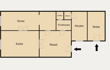 A konyhához kamra, a fürdőszobához lichthofra néző ablak tartozik, összkomfortos kialakítású.