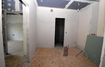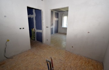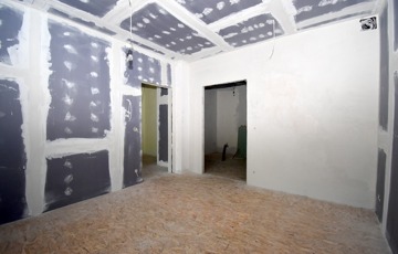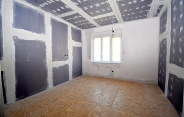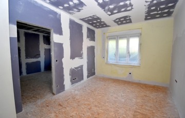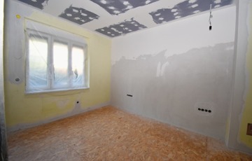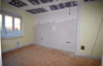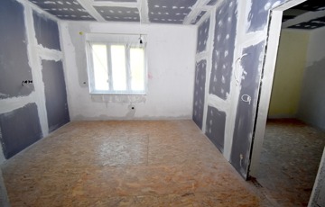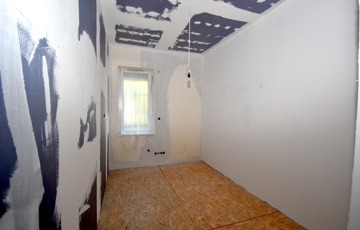 - Teljes padlószerkezet megújítva: a salakfeltöltés eltávolítása után korszerű rétegrend épült (hővisszaverő fólia, XPS hőszigetelés, OSB lap, padloppon).