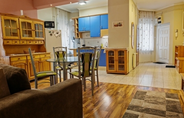 Pécs- Petőfi utca 63-ban, egyetemváros-belváros határán, három szintes téglaépítésű társasház 2. emeletén, 55nm-es, amerikai-konyha nappalis+1szobás , fiatalos lakás kiadó. Az ingatlan néhány éve gépészetileg és esztétikailag is teljes felújításra került. Konyhájában L alakban végigfutó, egyedi tervezésű konyhabútor található. Szobái magas kopásállóságú laminált parkettával, a többi helyiség, minőségi kerámia lapokkal burkolt. A fürdőben modern szaniterek és burkolatok kerültek beépítésre.. Az összes nyílászáró új, hőszigetelt üvegezésű, bukó-nyíló műanyag nyílászáróra cserélt.Kellemes időrért légkondicionáló felel.Az ablakok a csendes füvesített, parkosított belső udvarra néznek. Közvetlen környezetében buszmegállók, óvoda, iskola, gyógyszertár, rendelő intézet, posta, boltok, üzletek, éttermek, edzőterem és számos kiszolgáló egység megtalálható. Elhelyezkedése miatt , fiatal párnak és diákoknak egyaránt tökéletes választás. Egyetemek gyorsan, könnyedén elérhetők. A kaució 2 havi kaució és 1 havi bérleti díj megfizetését követően azonnal birtokba vehető.