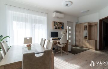 A házban műanyag nyílászárók kerültek: DECCO 70, fehér műanyag, 6 légkamrás argongázzal töltött, 3 rétegű üvegezéssel, tehát rendkívül jó hőszigetelő képességük van. Minden nyílászárón rejtett fehér színű redőny, és minden ablakon rejtett szúnyogháló található. Az ikerházban a fűtést gázcirkó kazán biztosítja padlófűtéses hőleadással. A tikkasztó nyári napokat 2 db Daikin WiFi-s klíma teszi kellemessé (földszinten és emeleten is 1-1). A biztonságot riasztó rendszer garantálja.