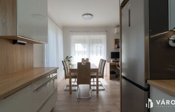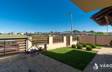 A kertkapcsolatos ingatlanhoz egy gyönyörű, ízlésesen parkosított kertrész, valamint 20 m² fedett térkövezett terasz is tartozik ahol akár grillezhet is a család és a barátok társaságában.