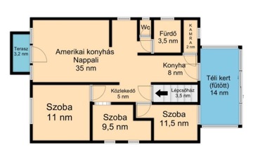 - fűtött (padlófűtés) 14 nm-es TÉLIKERT az emeleten