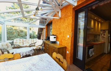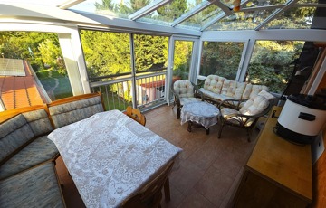 Az emeleten egy nagyon hangulatos és fűtött (teljesen beüvegezett) télikertből nyílik pompás kilátás a kertre.