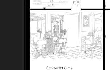 - üzlettér 31,8 m2+ kiszolgáló helyiségek